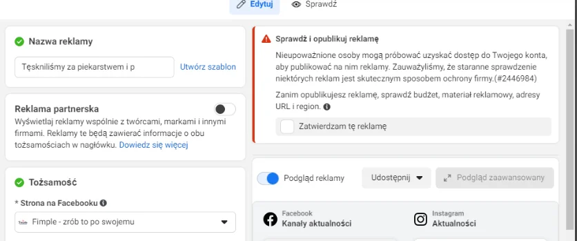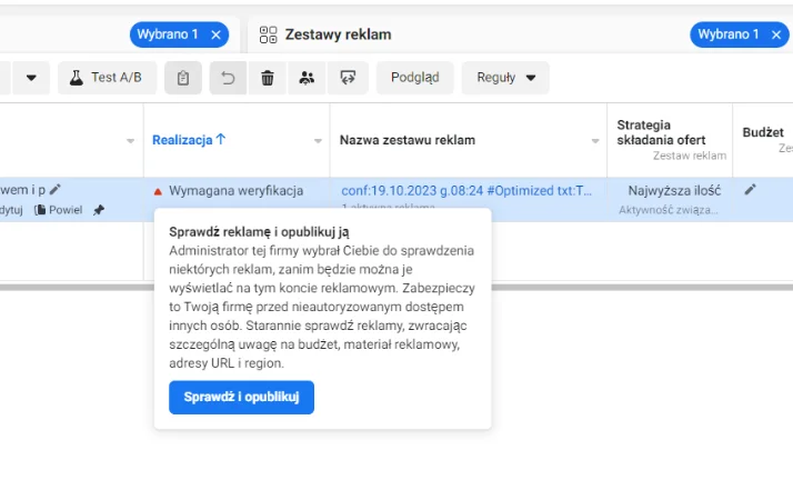 Takie działanie spowoduje przesłanie kampanii do weryfikacji.