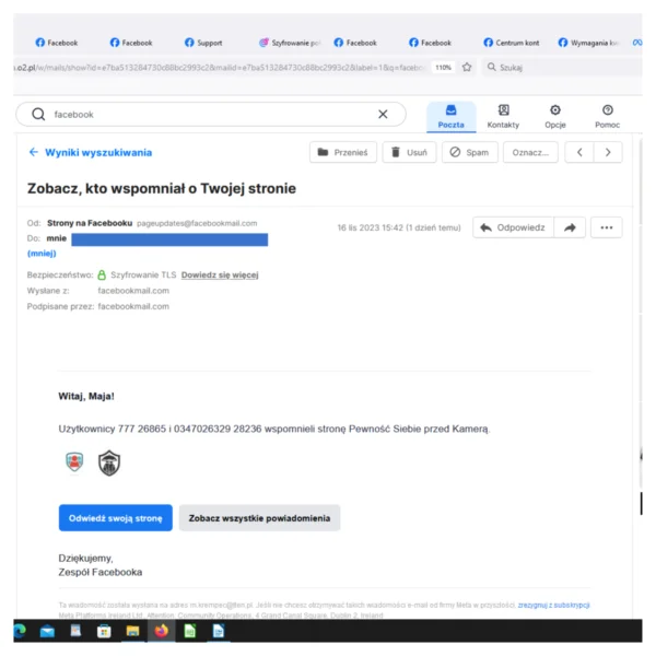 Jest pewne powiedzenie … Facebook jest jak Urząd Skarbowy. Najpierw wszystko ci blokuje a dopiero potem wysyła maila. Więc jeśli widzisz OSTRZERZENIE od Facebooka włącz podwójną ostrożność. Wszystkie próby przejęcia twojego konta robią specjaliści. Znają się na budowaniu emocji, strachu, eskalowaniu poczucia utraty i wkłądają dużo pracy w to aby wiadomość wyglądała na prawdziwą i aby wprowadzić cię wbłąd. Chcą byś myślał że Facebook do Ciebie pisze.