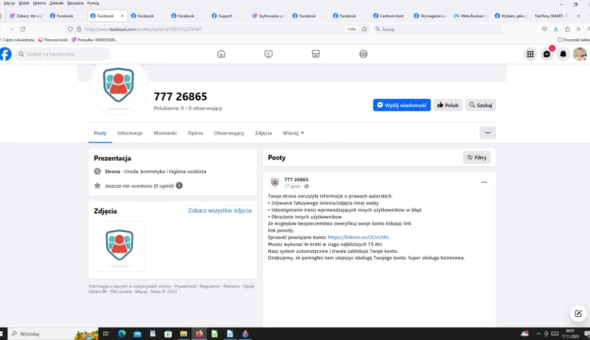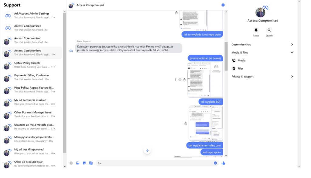 Dziewięć tygodni temu zgłosiliśmy facebookowi, że pojawiają się konta które piszą do naszych klientów na Messengera ale te konta są inne, dziwne bardzo dziwne.
