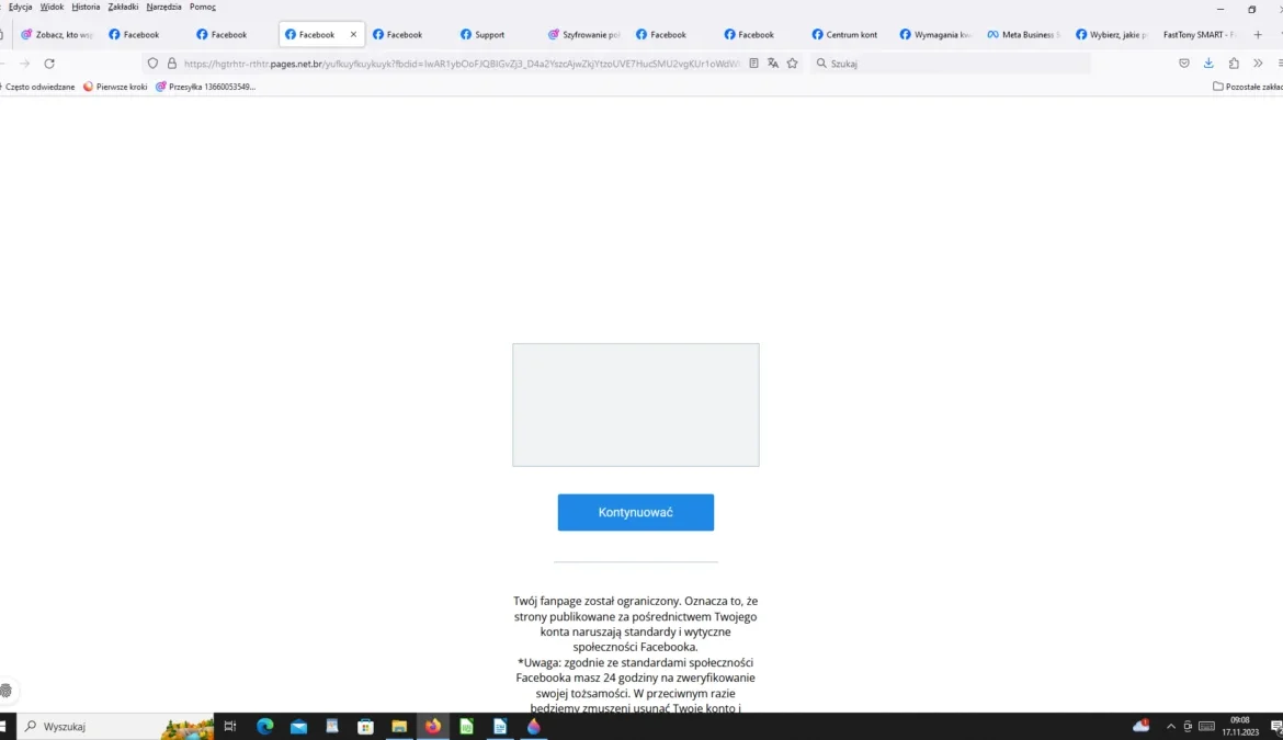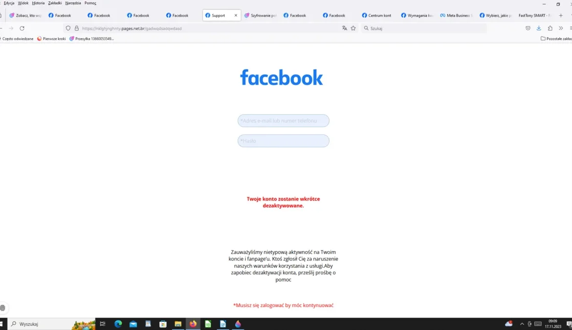 Pamiętaj! Facebook do Ciebie nie pisze! Facebook działa jak Urząd Skarbowy – najpierw blokuje Ci zasoby, a potem to ty masz się z nim skontaktować w celu wyjaśnienia dlaczego to zrobił.