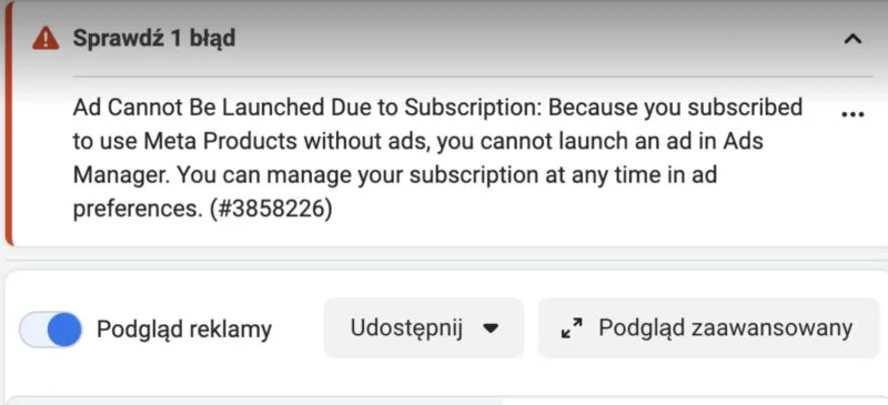 Błąd – nie mam subskrypcji, a nie mogę robić reklam?