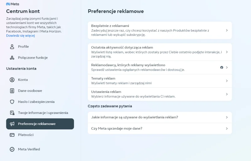 Najszybciej sprawdzimy to w Centrum kont – https://accountscenter.facebook.com/?entry_point=help_center w zakładce preferencje reklamowe.