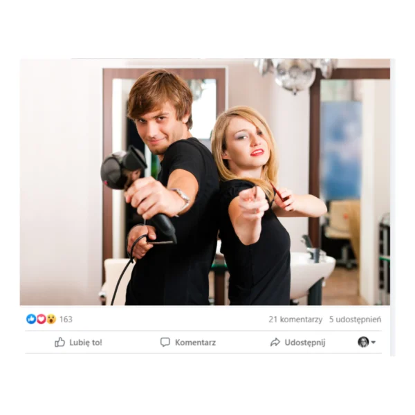 Daj się poznać! Jak właściciele jednego z salonów fryzjerskich z Warszawy! Kasia i Marek swoje posty promują regularnie, zwiększając zasięgi i budując zaangażowanie i społeczność wśród swojej marki i salonu na jednym z osiedli.