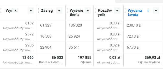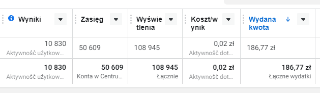 I możesz za niewielką kwotę skorzystać z reklamy Facebook ADS. Zobacz, jak wiele zmieniła taka kampania. A wydany budżet to całkowicie niewielka kwota.